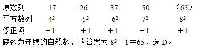 各组所得商值构成常数数列,因此未知项为29×2=58,故正确答案为D。