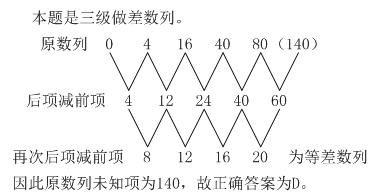 原数列做差可得:1、3、9。差是一个公比为3的等比数列,那么下一个差应该是27,原数列的下一个数为16+27=43。因此,本题答案为D选项。