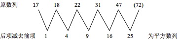 相邻两项做差得到:5,2,7,4,9,6,11;再次做差得到:-3,5,-3,5,-3,5;为周期数列。则括号里填11+(-3)+46=54,因此,本题答案为D。