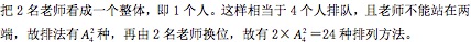 2名老师可以站在2、3位或者3、4位,两种情形方法数相同。考虑第一种情形,其余三个学生排列方法数为3×2×1=6,两位老师可以交换位置,因此第一种情形共有6×>2=12种排法。则总共有12×2=24种排法。故正确答案为B。