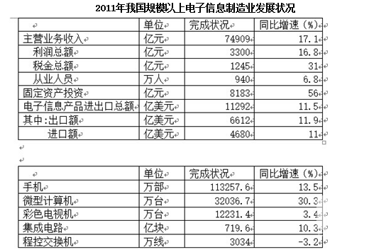 A.2011年我国规模以上电子信息制造业整体呈亏损状况