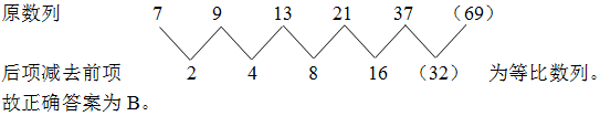 观察数字变化规律,数字单调递增且增速不快,因此考虑多级等差数列。原数列:11,14,20,29;做一次差得:3,6,9为等差数列,下一项为12,故原数列下一项为29+12=41。因此,本题答案为B选项。