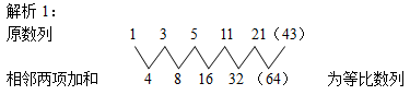 解析2:2倍递推,用±1修正。具体规律为1×2+1=3,3×2-1=5,5×2+1=11,11×2-1=21,因此下一项为21×2+1=43。