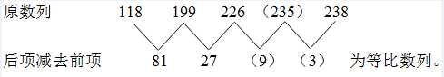 因此原数列的未知项为235,故正确答案为D。