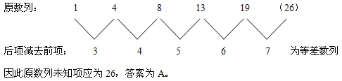 数列相邻两项的差依次为:15,12,9,6,(3),这是一个公差为3的等差数列,所以( )=44+3=47,故本题的正确答案为C。