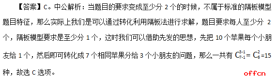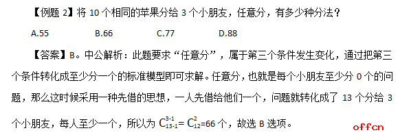 中公教育的老师相信通过以上内容大家不难发现,其实隔板模型的题目 相对比较简单,那么我们在做题的时候一定要先判断出题目特征,看是否满足隔板模型的条件,是否属于隔板模型的变型,那么利用公式求解即可。希望通过以上讲解,大家能够对隔板模型有个深刻的理解和掌握。