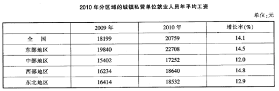 1.将2010年城镇私营单位平均工资的同比增速从高到低排列,以下正确的是( )