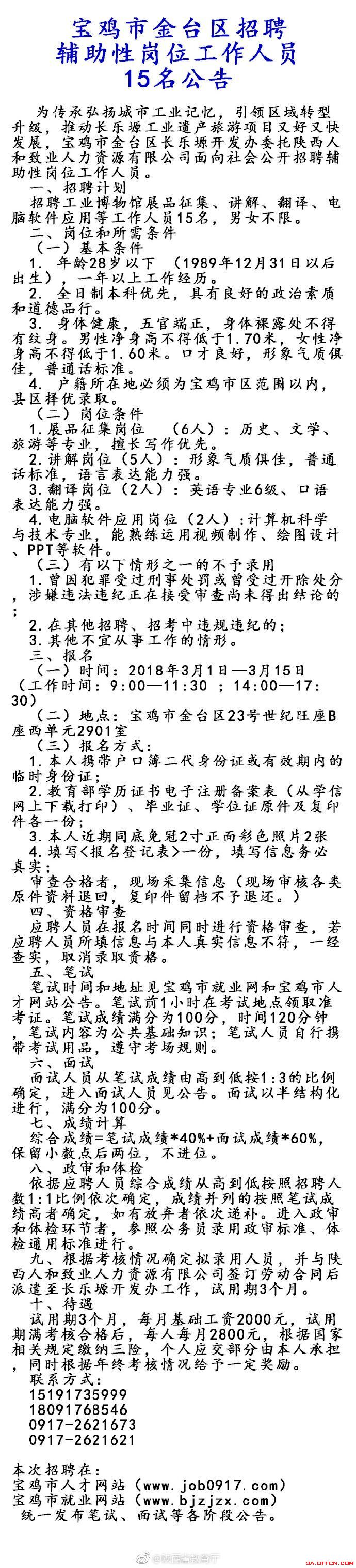 【导语】2018年陕西公益性岗位招考公告在陆续发布中,为了避免大家遗漏公益岗考试信息,中公公益岗考试网为广大考生汇总了每日招考信息,便于大家及时查看。