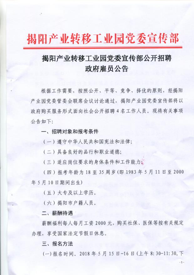 下一篇:2018广东揭阳产业园党委宣传部招聘政府雇员4人公告