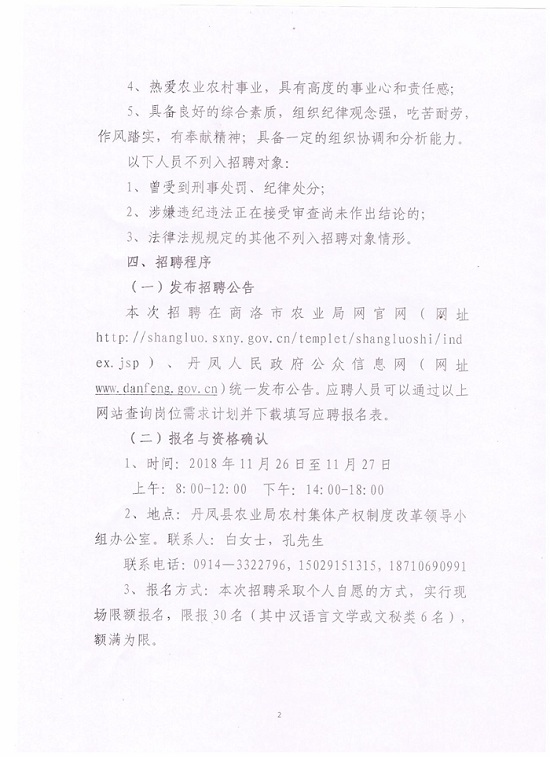 2018陕西商洛丹凤县招聘农村集体产权制度改革工作人员公告(10人)