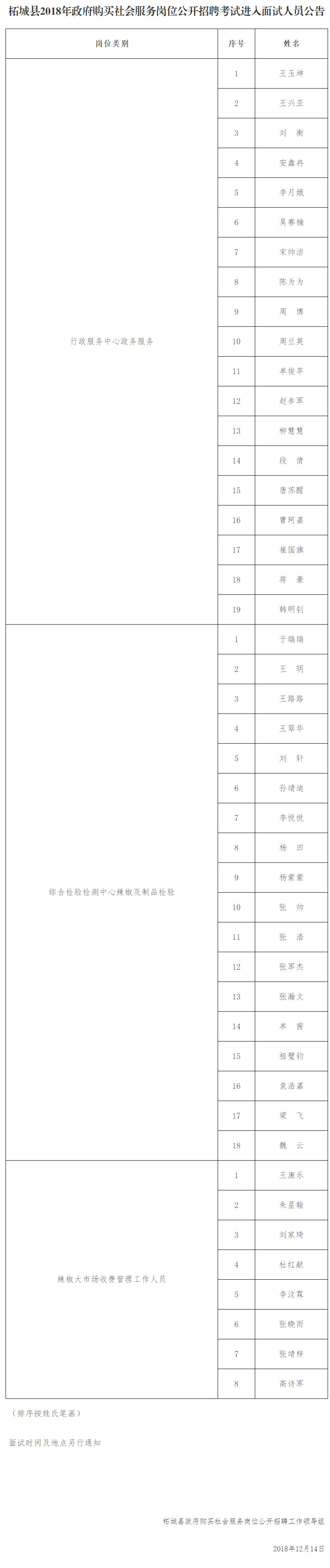 原标题:柘城县2018年政府购买社会服务岗位公开招聘考试进入面试人员公告
