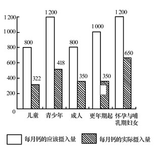 2.成人对钙的实际摄入量是应该摄入量的( )。
