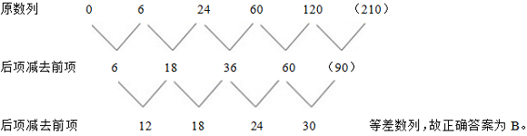 数列中相邻四项,前两项之积等于后两项之和。具体规律如下:6×3=5+13,3×5=13+2,5×13=2+63,所以未知项为13×2-63=-37。故正确答案为B。