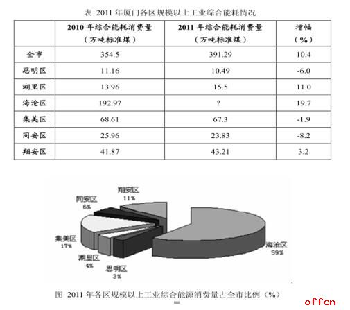 【例题】2010年厦门各区规模以上工业综合能耗消费量所占比重说法正确的是:( )