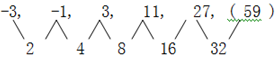 后一项减前一项的差为:2,4,8,16……又形成了一个以2为公比的等比数列,则27+16*2=59,故正确答案为D。