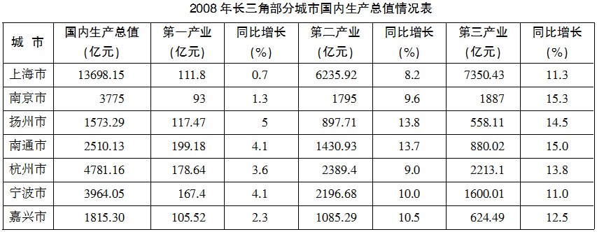 1.下列四个城市2008年国内生产总值的同比增长率最高的是: