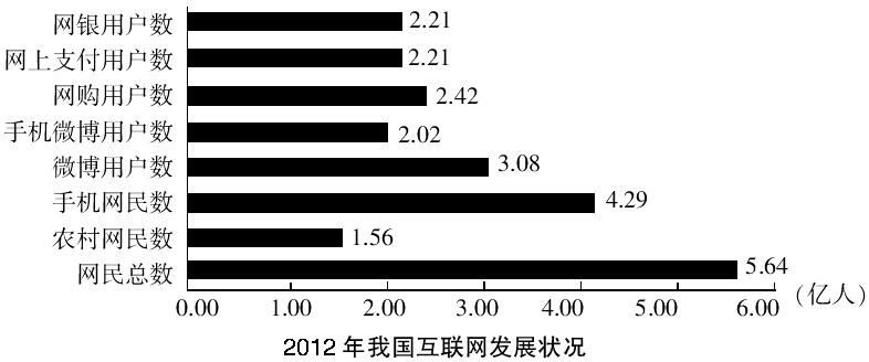 截至2012年底,我国全年新增网民5090万人(其中农村新增1960万人),互联网普及率为42.1%,较2011年底提升3.8个百分点。网民中使用手机上网的用户占比由上年底的69.3%提升至74.5%,微博用户同比增加5873万人,网民中微博用户的比例较上年底提升了6个百分点,达到54.8%。在网民增长速度逐步放缓的背景下,网络购物应用依然呈现迅猛增长的势头,网络购物使用率提升至42.9%,全年网络购物用户增加4807万,用户绝对增长量超出上年1463万。网上支付使用率提升至39.2%,全年用户增长5389万。网上银行使用率提升至39.2%,比上年底提升6.9个百分点。70.6%的网民使用台式电脑上网,相比上年底下降了近三个百分点,使用笔记本电脑上网的网民比例与上年底相比略有降低,为45.9%。