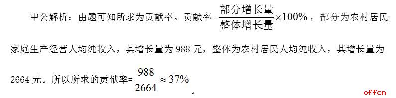 中公解析:由题可知,所求为规模以上私营企业工业企业产值的同比增长量,而材料已知的是贡献率和整体的现期值及增长率,由贡献率的公式可得,