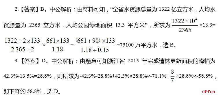 1.【答案】C。中公解析:由材料可知,2016年城市污水处理率93.2%,比上年提高1.91个百分点,所求为93.2%-1.91%=91.29%,选C。