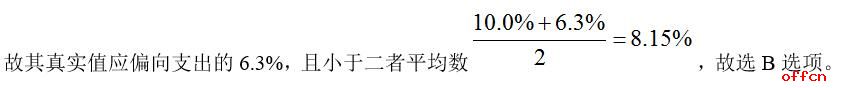 二、【答案】A。中公解析:题目给的是2014年全年的值以及上半年的值,然而题目所要求的事下半年的同比增长,我们能知道对于2014年全年是由上半年和下半年构成,所以满足我们十字交叉的应用,比值混合问题,上半年和下半年的增长率混合得到全年的增长率,所以全年增长率7.9%应该介于上半年增长率8.7%和下半年增长率之间,所以很快能够得到下半年的增长率应该小于7.9%,而对于选项中只有A项是满足的,故可以很快选择出答案。