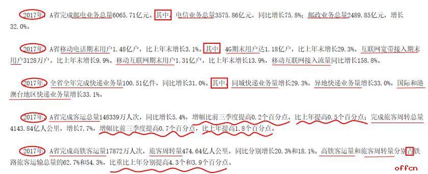 再比如那些特定名词,用直线画出来,当我们读完问题,返回到材料中找数据时,只需要根据我们的记忆去找划线的部分就可以了。