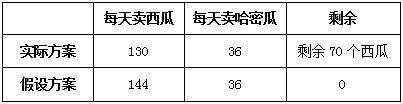 方案一:如果每次从中卖西瓜130,哈密瓜36,,若干天后,哈密瓜刚好卖完,剩下西瓜70个。