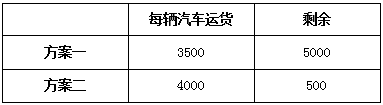 方案二每辆车比方案一多运4000-3500=500千克,总共多运的量5000-500=4500千克,因此可知,方案二比方案一每辆车多运500千克,总量多运4500千克,那么可得,该车队有4500÷500=9辆汽车。