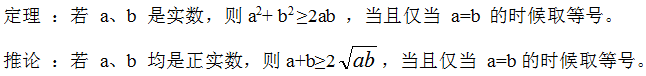 由上述推论可知,当正实数a、b的乘积为定值时,a与b的和可取到最小值,当且仅当a=b时取到。