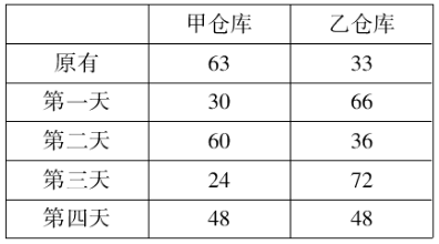 2.【答案】D。中公解析:此题采用逆推法,第四天甲、乙两仓库的集装箱数都是48个,并且两个仓库里集装箱的总数为96个,则有: