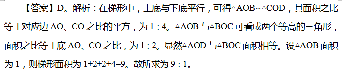 2. 如图,在梯形ABCD中,AB∥CD,O为AC与BD的交点,CO=2AO,则梯形ABCD与三角形AOB的面积之比为: