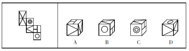 2.左边给定的是纸盒的外表面,下面哪一项能由它折叠而成?