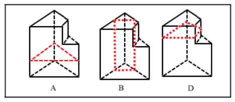 1.【答案】C。中公解析:按下图中所示的面剖开时,截面分别对应于A、B、D项。