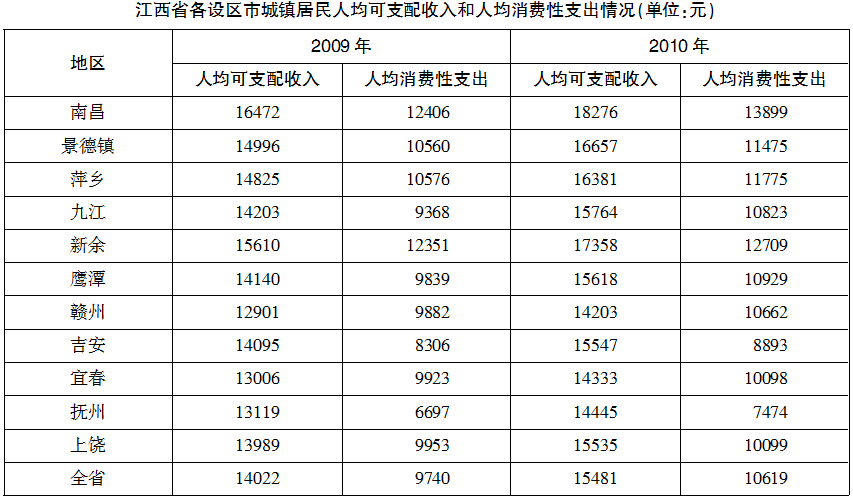 2.2010年与2009年相比,人均消费性支出增速大于可支配收入增速的是: