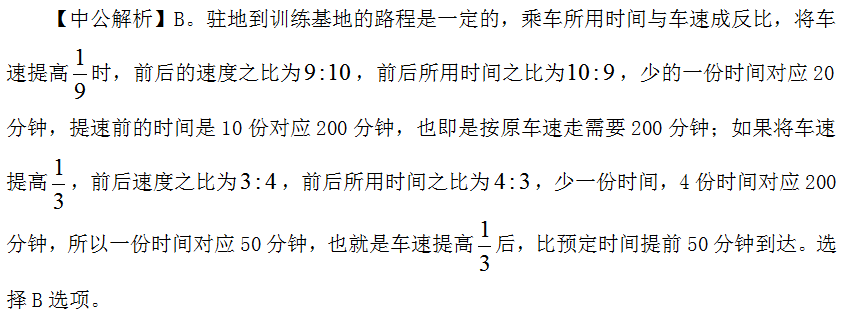 通过以上几道题目的详细解析,中公教育希望考生们能够理解并掌握好这种利用正反比快速解决一些特定行程问题的解题方法,并在备考阶段做一些对应的练习题熟练应用,这样才能在时间有限的考场上遇到这类题目时能够快速解决。
