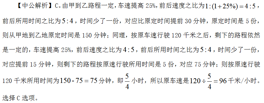 【中公解析】C。甲乙两车同时出发到相遇,所用时间相同,所行使的路程之比等于速度之比