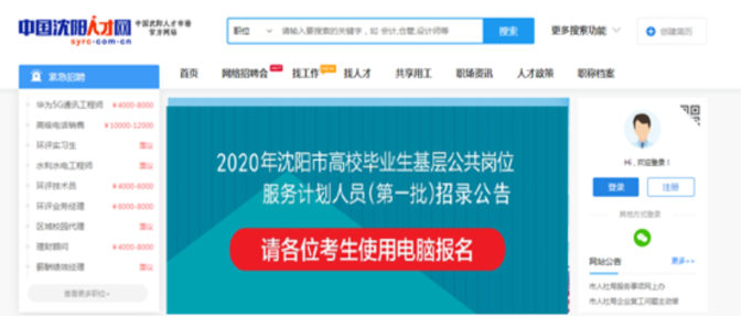 2020年沈阳市高校毕业生基层公共岗位服务计划人员(第一批)网上报名流程及注意事项