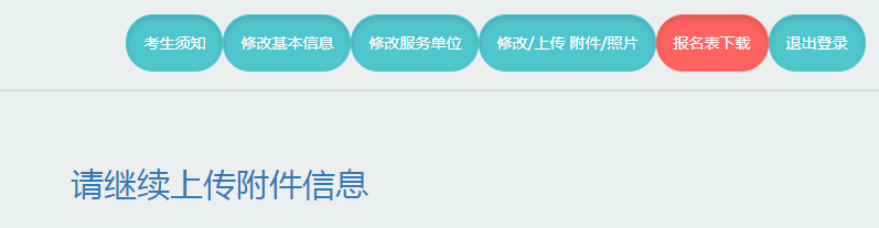 报名第二步:填写两页报考基本信息后,点击下一步按钮,系统跳转到“请继续上传附件信息”。