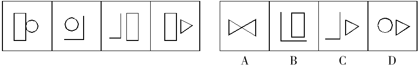 4.【答案】A。中公解析:每项图形由左右两部分组成,前项图形的右边部分是后项图形的左边部分。
