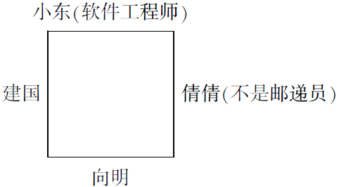 根据“向明坐在高校教师的右手边”可知建国是高校教师,则倩倩是园艺师,向明是邮递员。故答案选B。