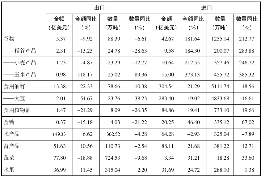 5.下列关于我国2012年1-10月八类主要农产品进出口状况的描述,与资料相符的是( )。
