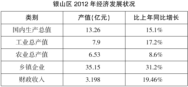 1.2012年银山区工业总产值比农业总产值多( )亿元。