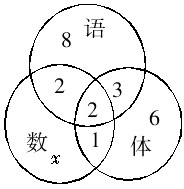 1.【答案】C。解析:如图所示,设只能教数学的有x人,则x+8+6+4+5+3-2×2=27,解得x=5。