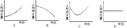 5.下列各图中能够反映出从1910年到2000年日平均人均用水量变化趋势的是: