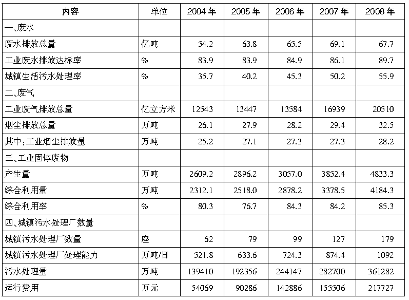 表 某省环境统计公报(2004-2008年)