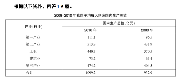 2.与2009年相比,2010年平均每天创造国内生产总值增长最快的产业(行业)是( )