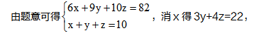 4. 【答案】A。解析:设射中6、9、10环的次数分别为x、y、z,