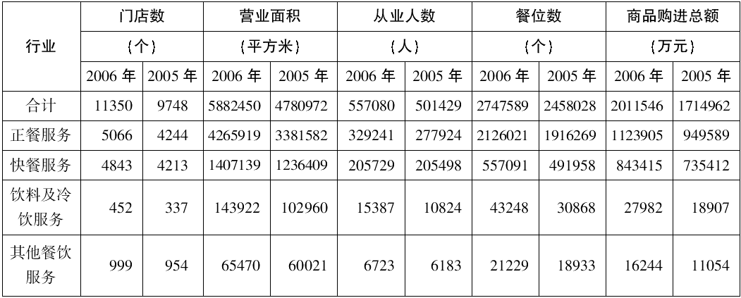 A.2006年限额以上连锁餐饮业有了较快的发展
