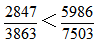 。中公解析:5986是2847的2.X倍,7503是3863的1.X倍,可知分子的倍数大于分母的倍数,分数值变大,即